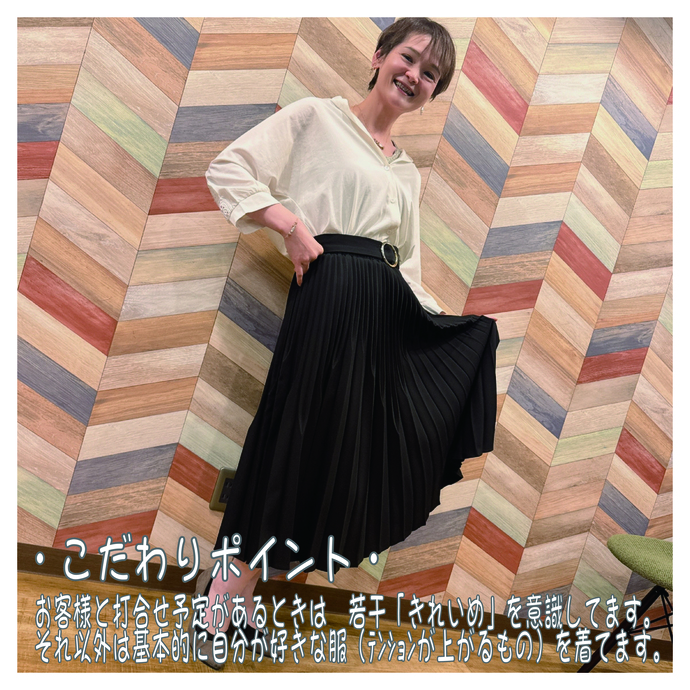 「お客様と打合せ予定があるときは 若干「きれいめ」を意識してます。