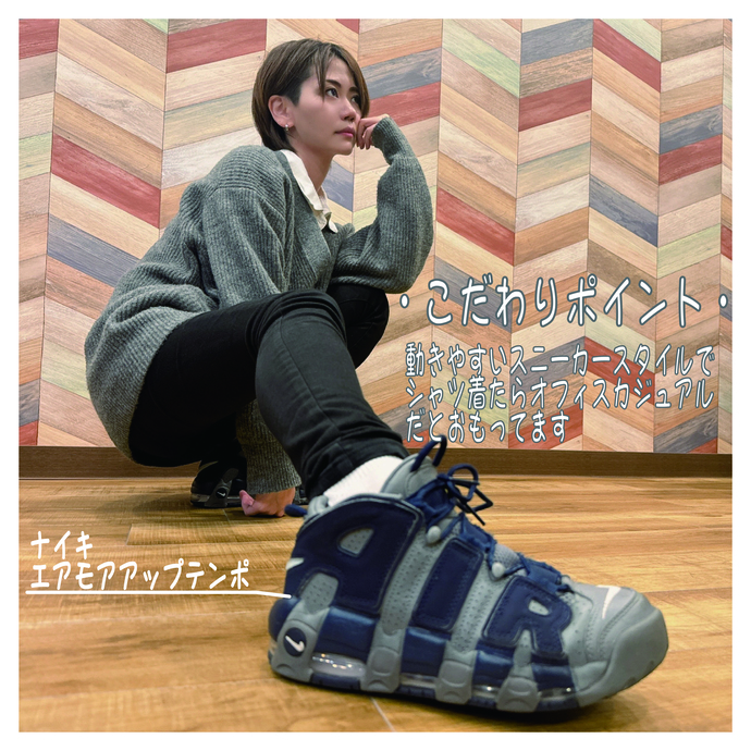 とのこと。ナイキエアモアアップテンポをはいてるとほかの社員から