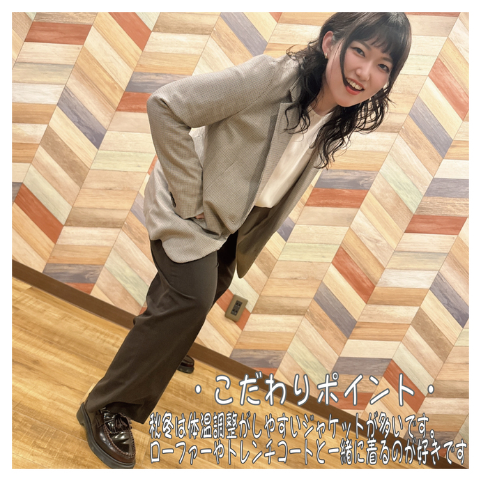 ローファーやトレンチコートと一緒に着るのが好きです🕺」とのこと